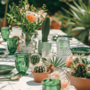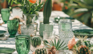 Decoración de mesas con renta y montaje de mantelería, vajilla, cristalería, cubiertos y centros de mesa. Cada elemento aporta estilo y funcionalidad, convirtiendo la mesa en un lienzo.
