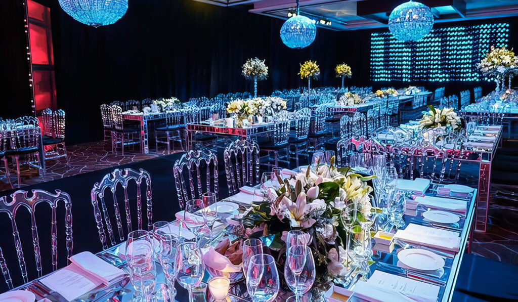 Ambientación integral que transforma espacios con atmósferas visuales únicas. Cada elemento decorativo se adapta al estilo del evento, la locación y el anfitrión, creando escenarios envolventes.