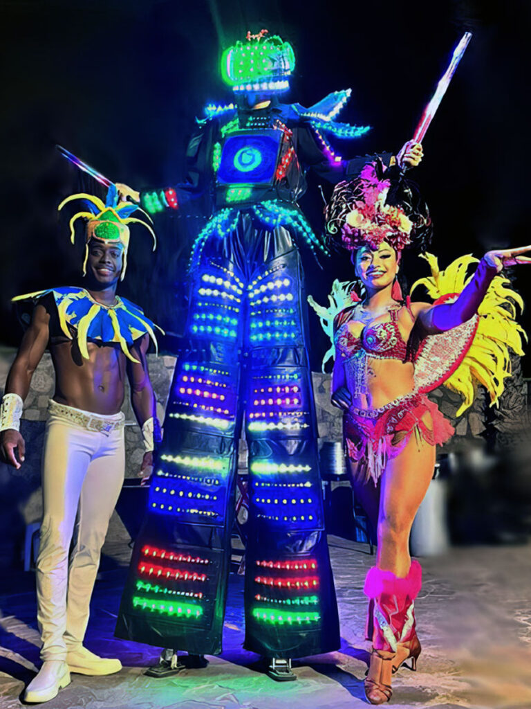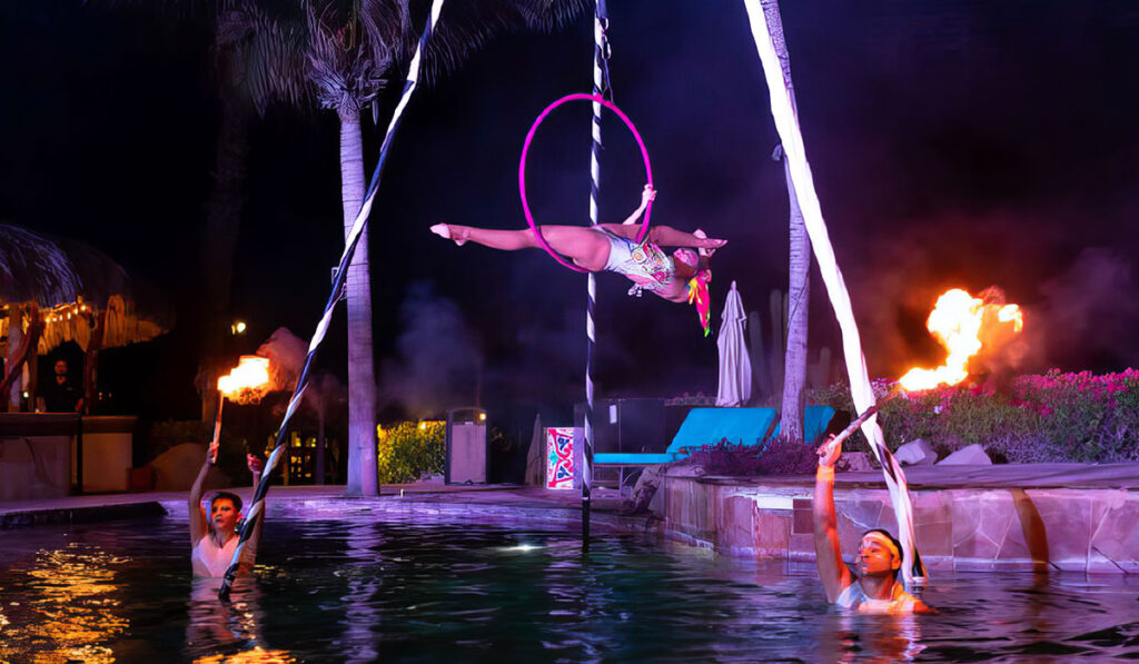 Espectáculos temáticos que sorprenden y envuelvenal estilo de noche mexicana, día de muertos, circo contemporáneo, alebrijes neón, shows LED, bailarinas con alas, robots, tambores iluminados y experiencias acuáticas que transforman la celebración.