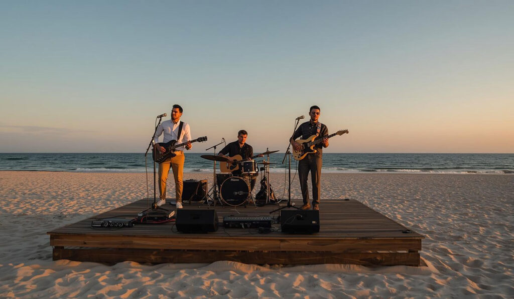 Músicos profesionales que transforman la atmósfera del evento como solistas, duetos, violinistas, guitarristas, saxofonistas, orquestas y grupos en vivo interpretan distintos ritmos, creando momentos memorables con talento, estilo y conexión emocional.